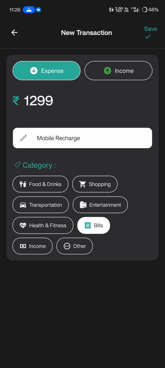React-Native Expo based Mobile Application Which is Primarily Focus on Tracking Expenses of user. Displaying the grand Total of Income, Expense and total balance.